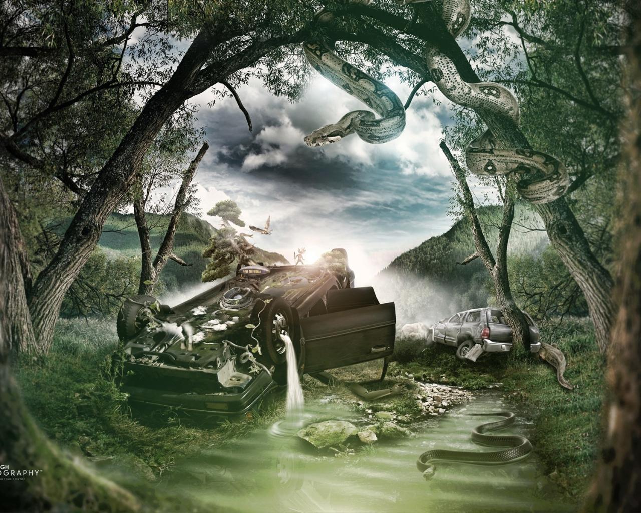 Автомобили в джунглях обои для рабочего стола, картинки, фото, 1280x1024. | ||||||||||||||||
