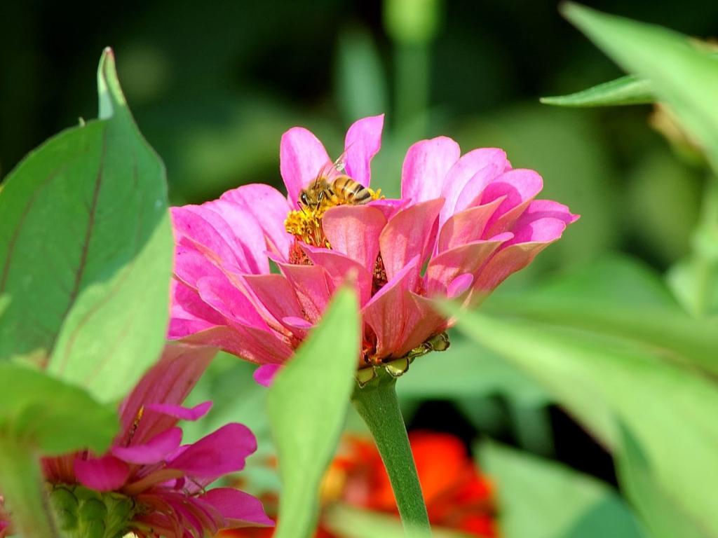 Пчелка в розовом цветке обои для рабочего стола, картинки, фото, 1024x768. | ||||||||||||||||