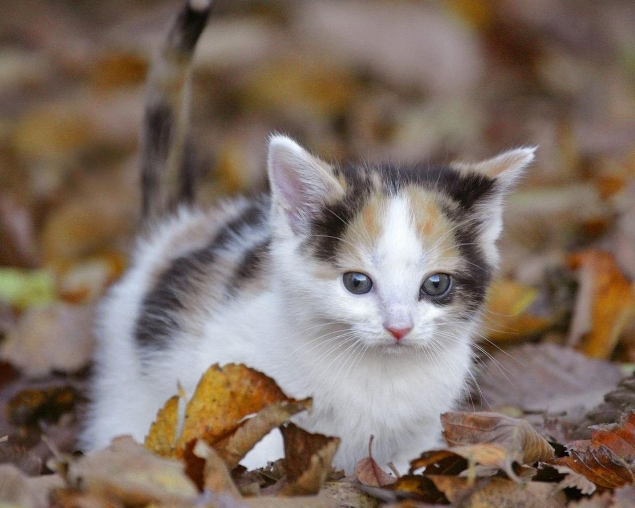 Киса среди листьев обои для рабочего стола, картинки, фото, 1280x1024. | ||||||||||||||||