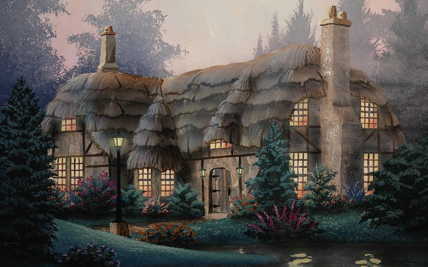 Уютный большой домик, рисованные обои для рабочего стола, картинки, фото, 1440x900. | ||||||||||||||||