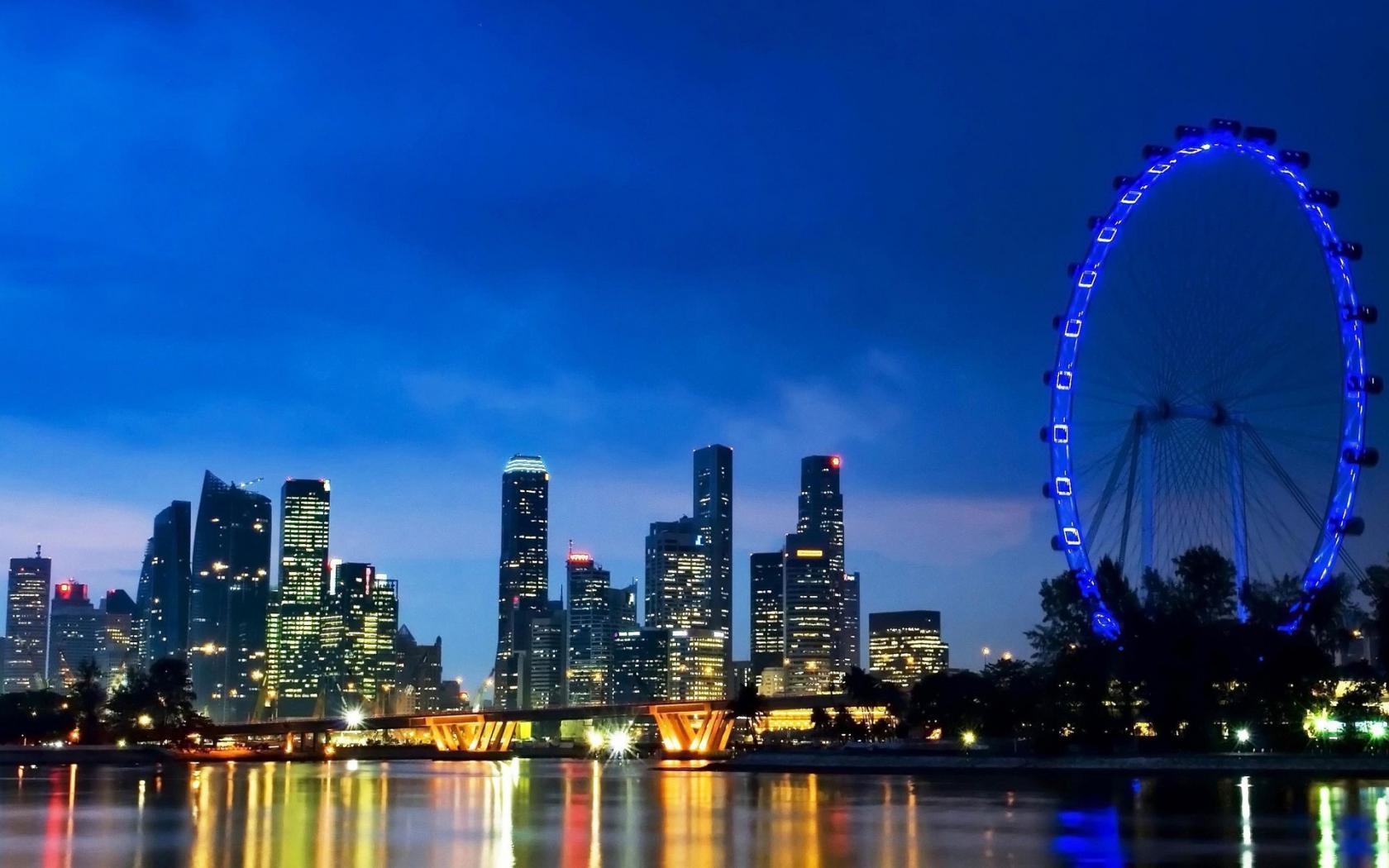Ночной город с колесом обозрения, на рабочий стол обои для рабочего стола, картинки, фото, 1680x1050. | ||||||||||||||||