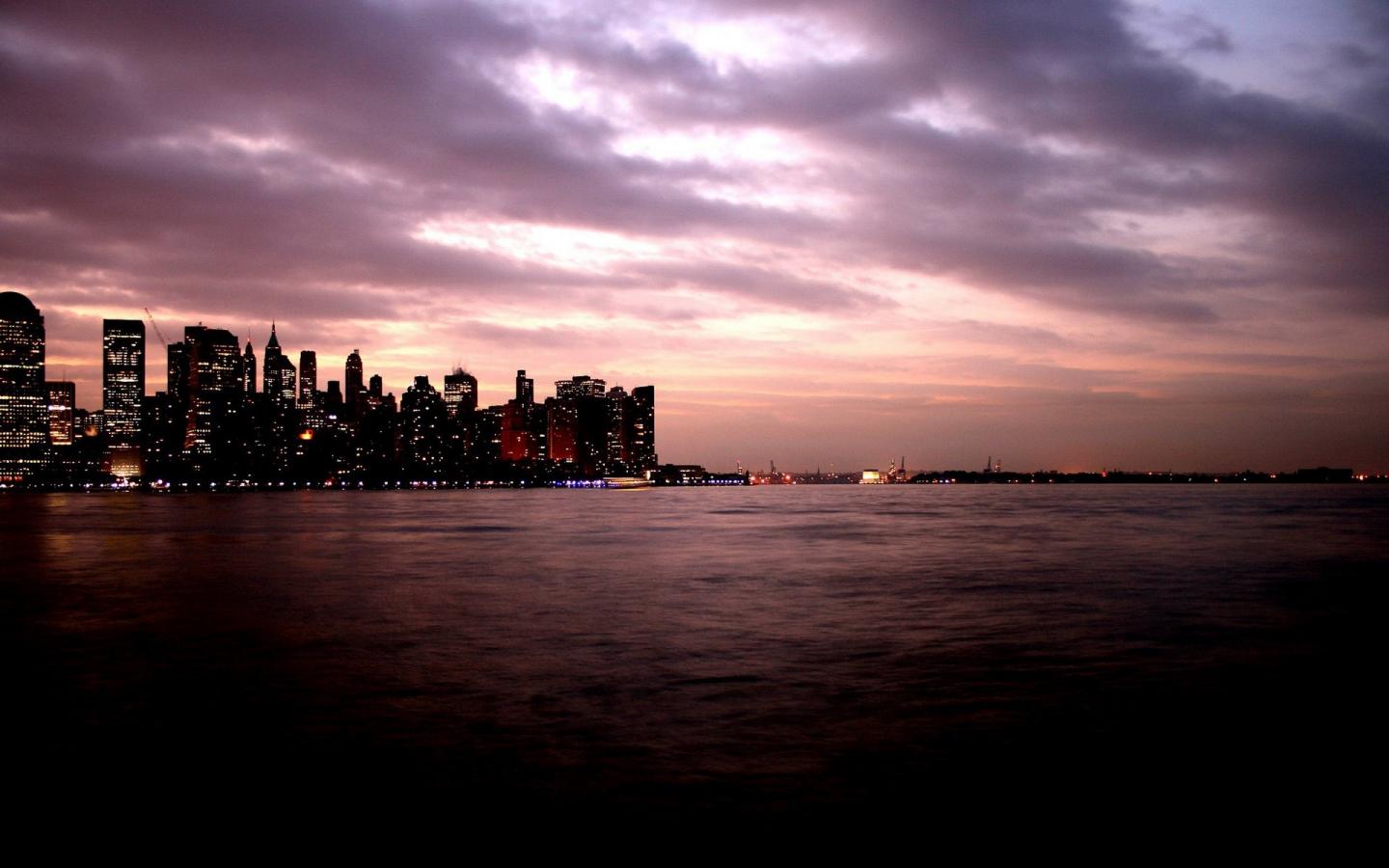 Город, вечер, море, огни обои для рабочего стола, картинки, фото, 1440x900. | ||||||||||||||||