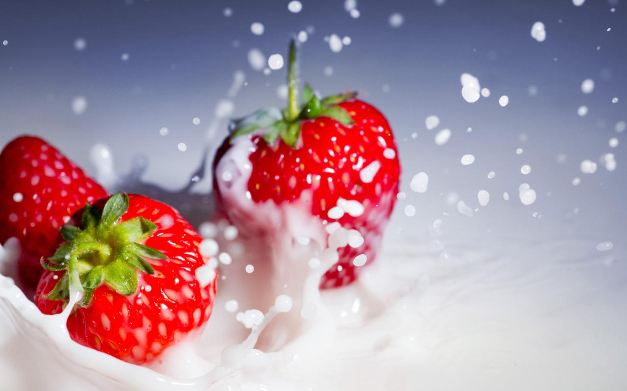 Макро, клубника, сливки, брызги обои для рабочего стола, картинки, фото, 1280x800. | |||||||||||||||||