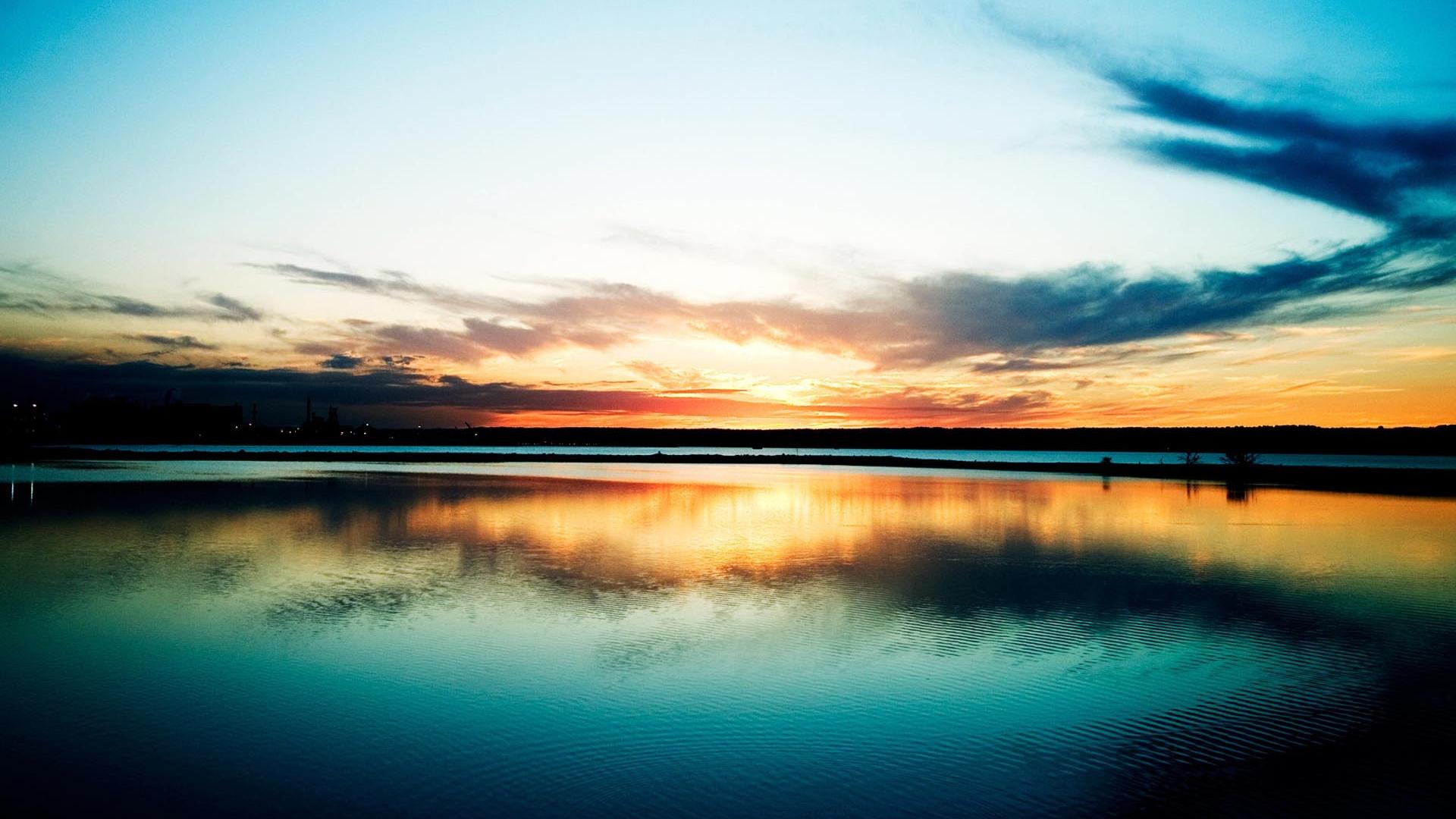 Закат над озером обои для рабочего стола, картинки, фото, 1920x1080. | ||||||||||||||