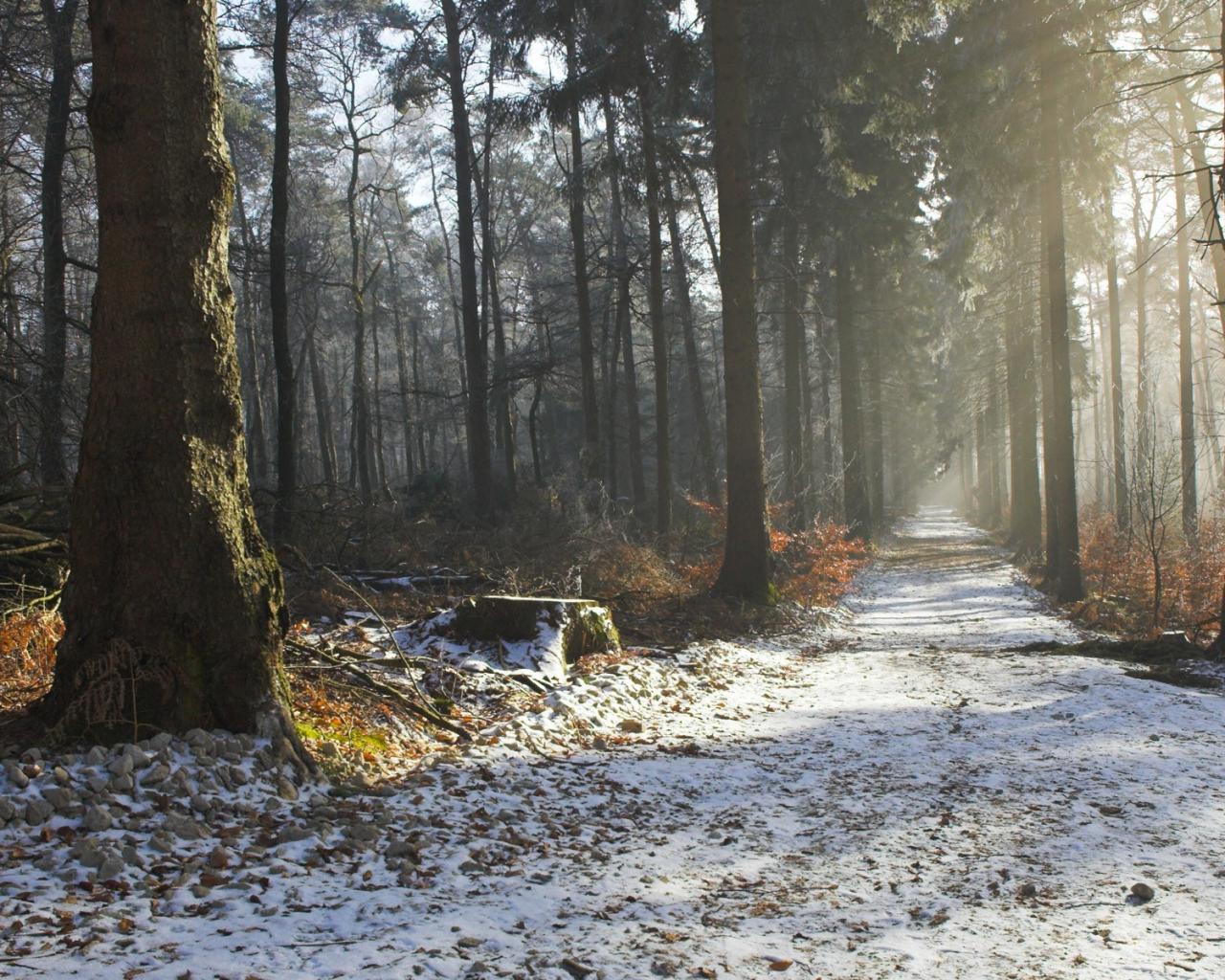Лес, деревья, дорога, дымка, осень, зима, утро, красота, природа обои для рабочего стола, картинки, фото, 1280x1024. | ||||||||||||||||
