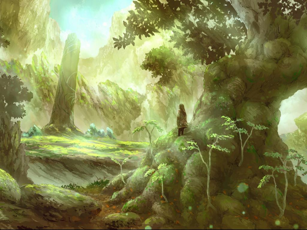 Человек, лес, деревья, свет, рисунок обои для рабочего стола, картинки, фото, 1024x768. | |||||||||||||||||