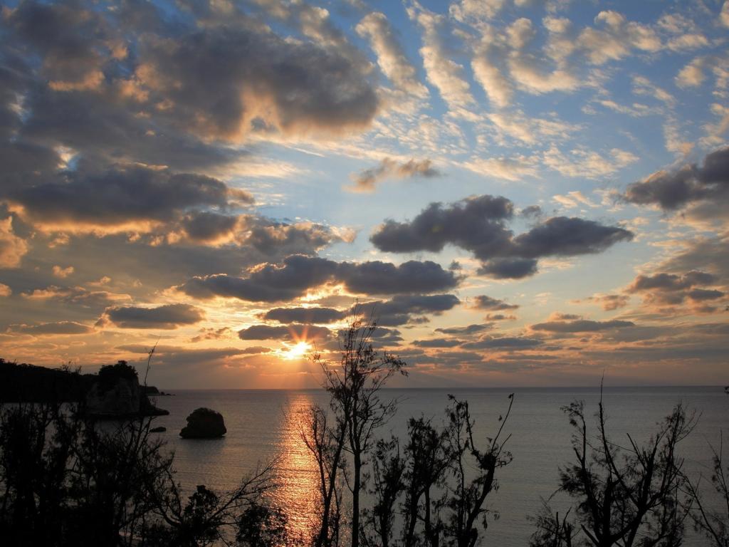 Закат в облаках над морем обои для рабочего стола, картинки, фото, 1024x768. | ||||||||||||||||