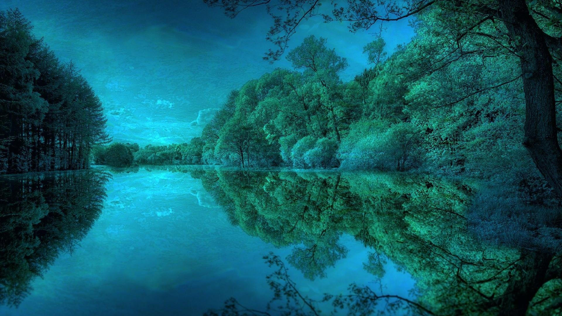 Зеркало реки, лес и небо, отраженье в нем обои для рабочего стола, картинки, фото, 1920x1080. | ||||||||||||||||