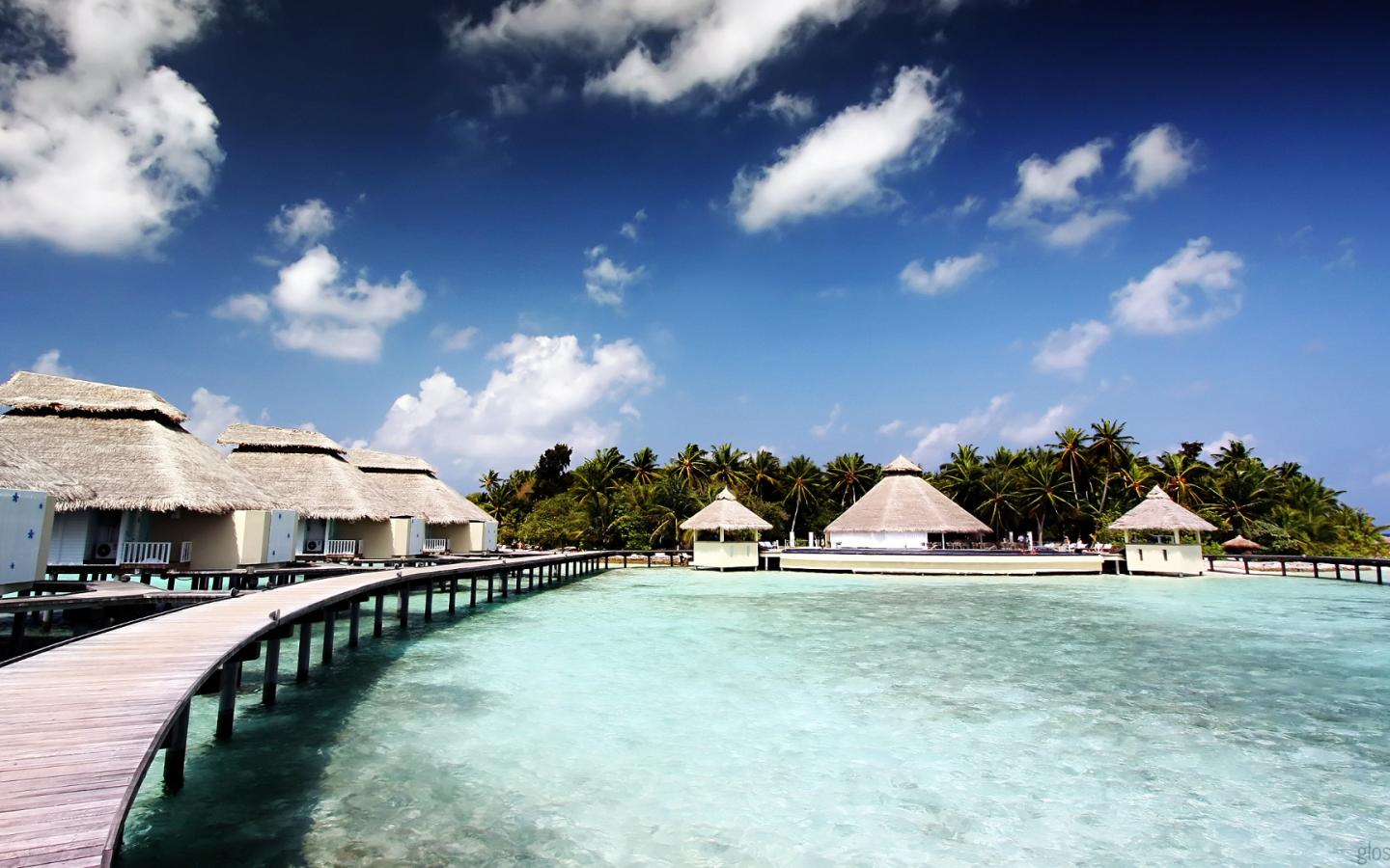 Чая риф эллайдо, отель, остров, эллайду, мальдивы, пальмы, небо, облака обои для рабочего стола, картинки, фото, 1440x900. | |||||||||||||||||