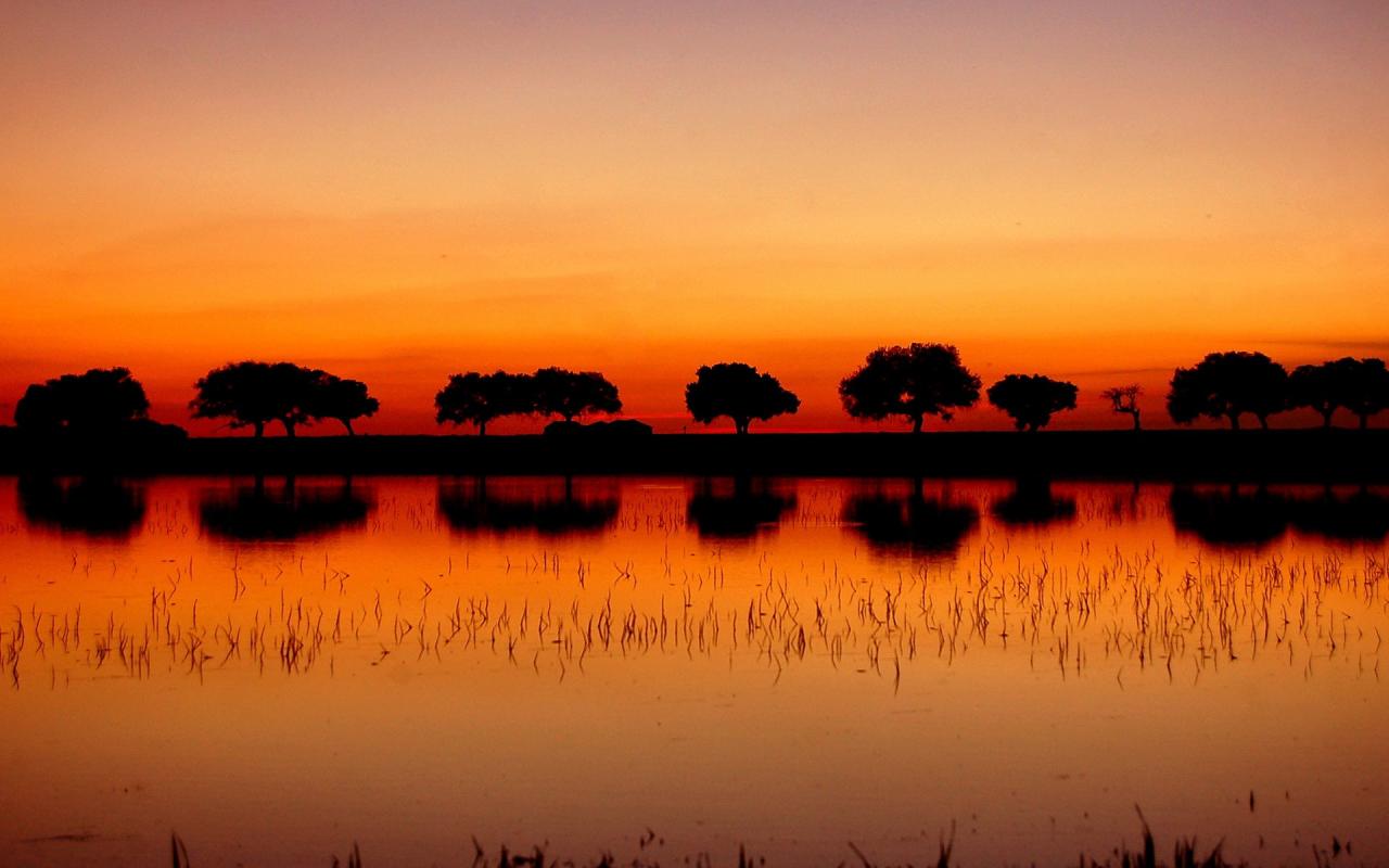 Деревья, закат, озеро, отражение обои для рабочего стола, картинки, фото, 1280x800. | ||||||||||||||||