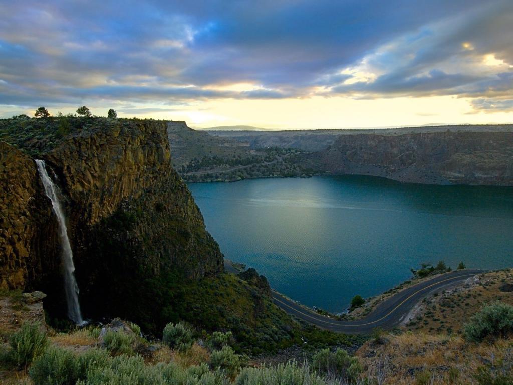Дорога, озеро, скалы обои для рабочего стола, картинки, фото, 1024x768. | ||||||||||||||||