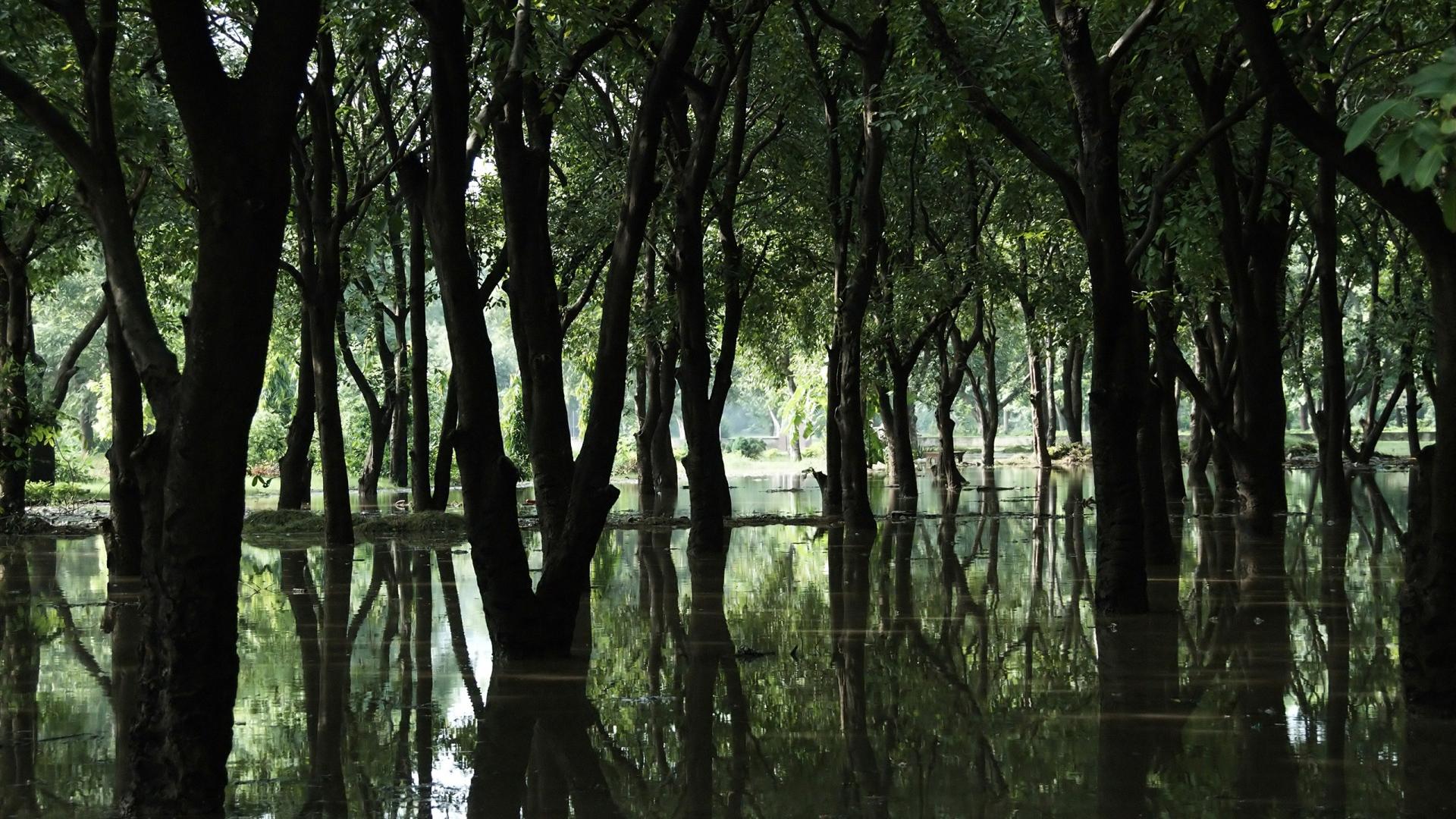 Половодье в лесу обои для рабочего стола, картинки, фото, 1920x1080. | ||||||||||||||