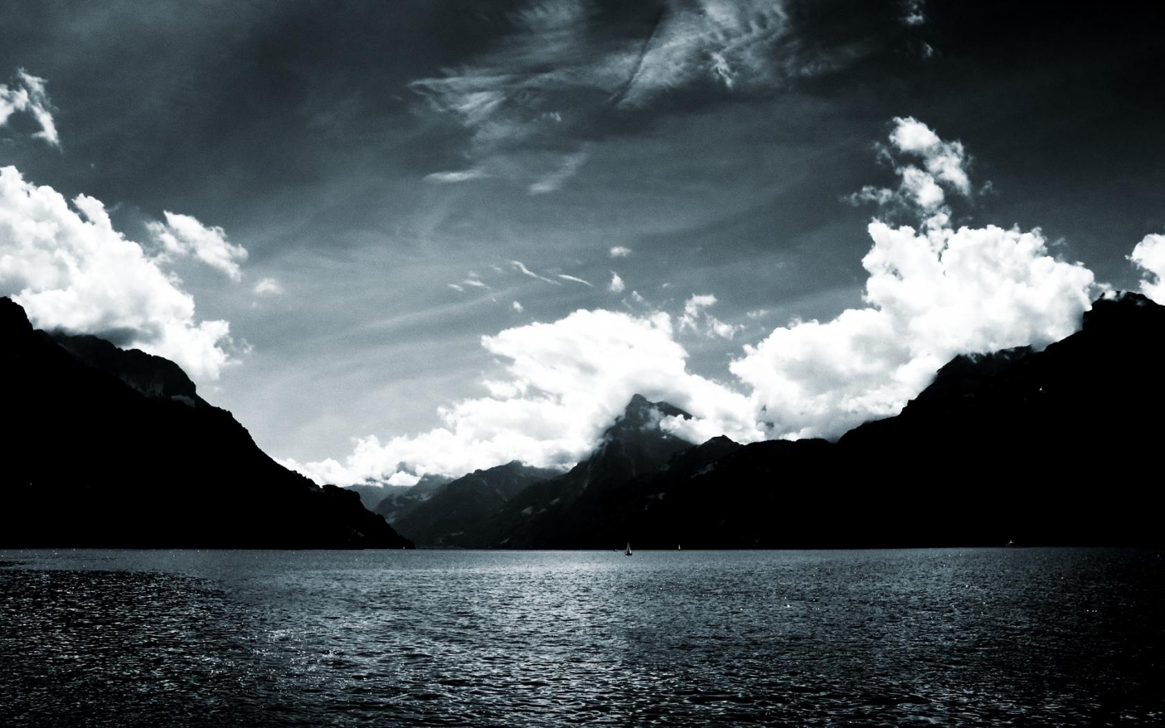 Природа, пейзаж, горы. море, небо, чёрно-белое обои для рабочего стола, картинки, фото, 1680x1050. | |||||||||||||||||