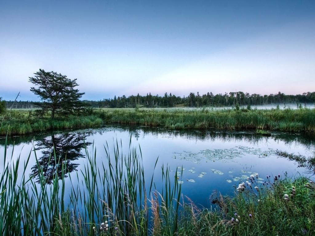 Пруд в тумане обои для рабочего стола, картинки, фото, 1024x768. | |||||||||||||||