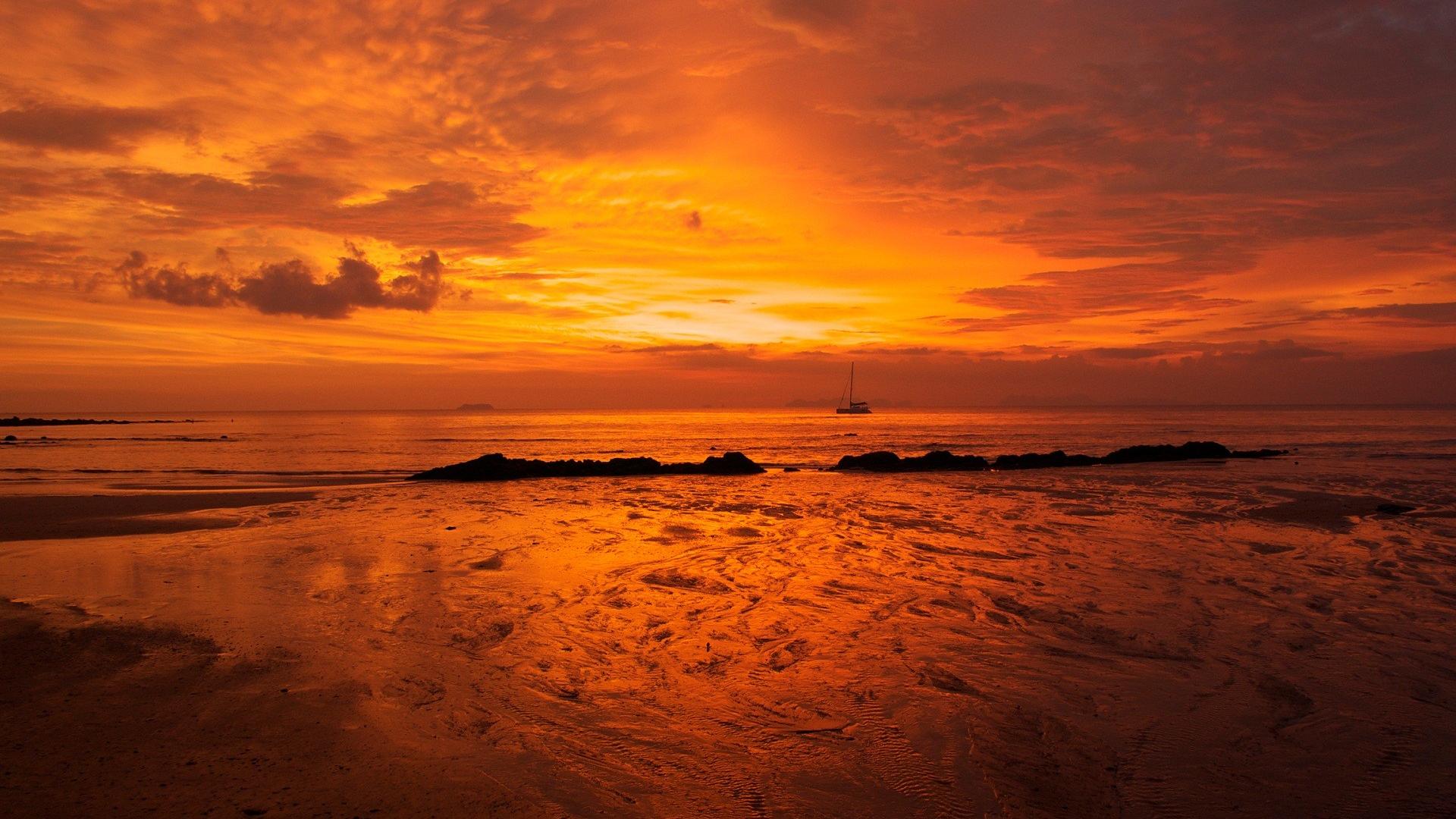 Оранжевый закат в облаках обои для рабочего стола, картинки, фото, 1920x1080. | ||||||||||||||||