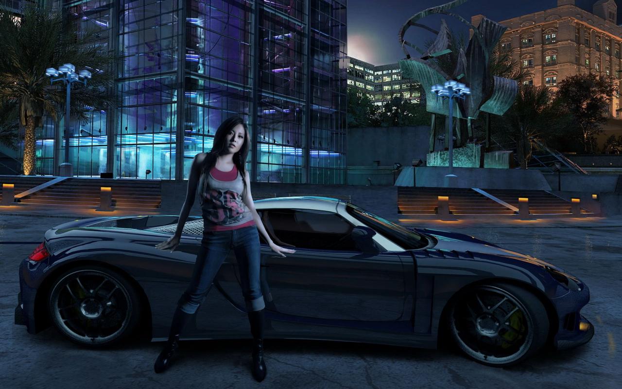3D машинка и девочка обои для рабочего стола, картинки, фото, 1280x800. | ||||||||||||||||