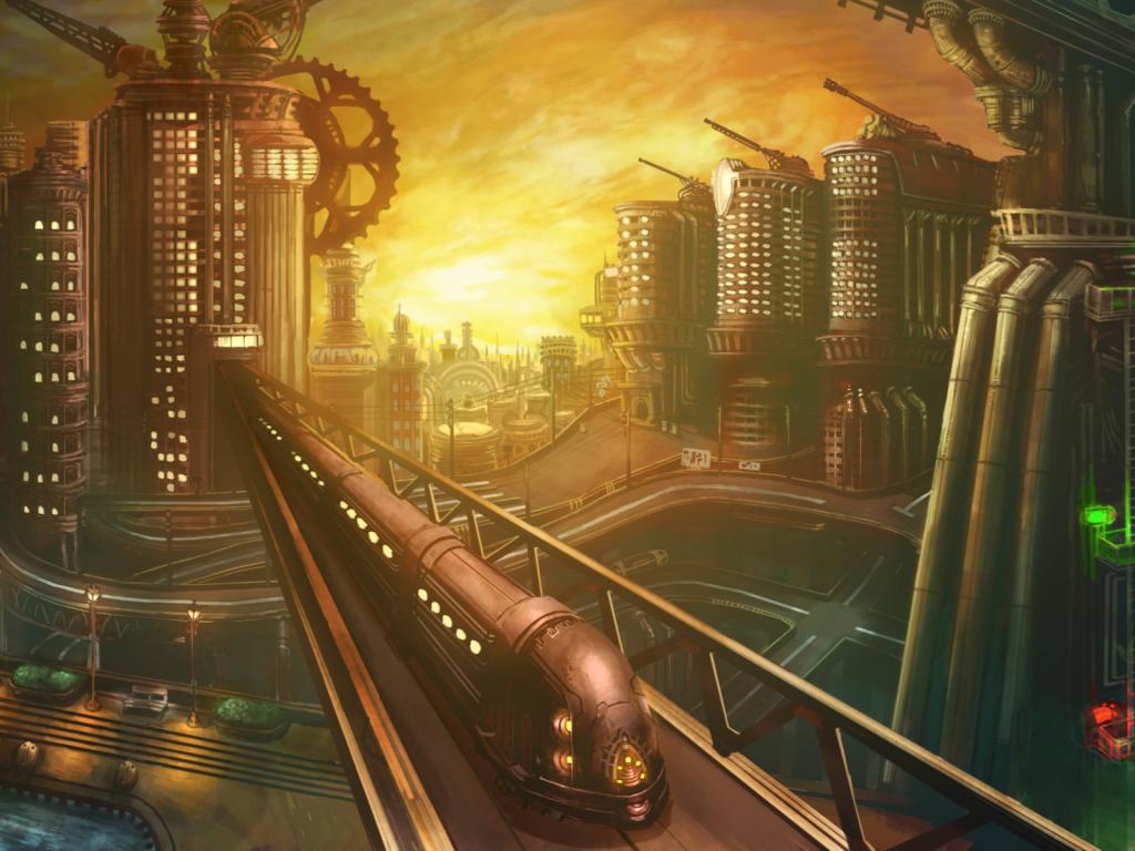 Город из мира стимпанк обои для рабочего стола, картинки, фото, 1024x768. | ||||||||||||||||