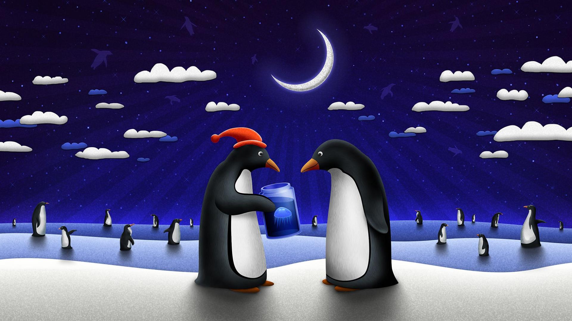 Нарисованные пингвины обои для рабочего стола, картинки, фото, 1920x1080. | ||||||||||||||||