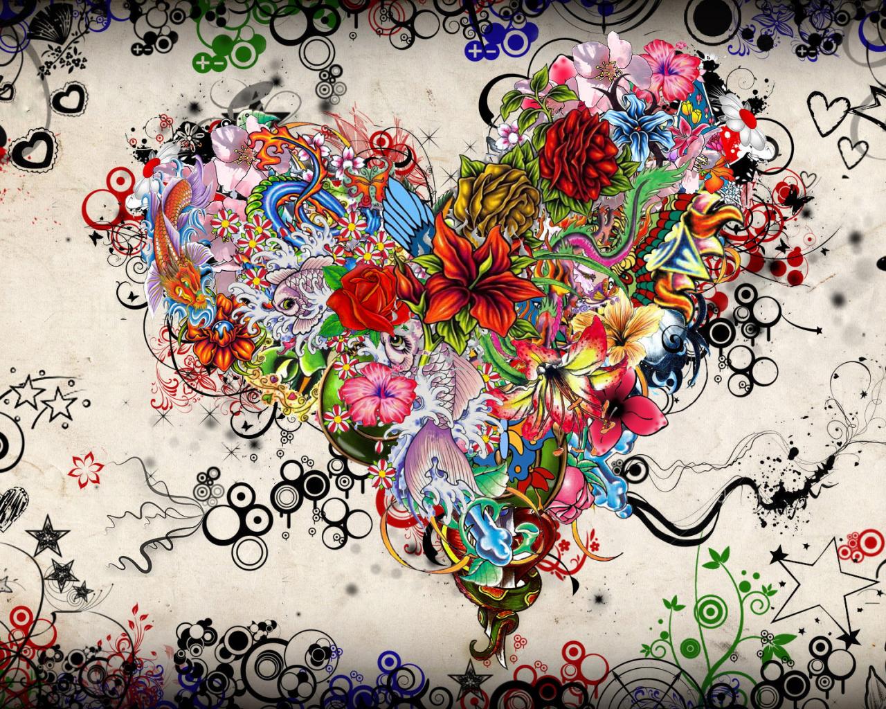 Векторное сердце из различных элементов обои для рабочего стола, картинки, фото, 1280x1024. | ||||||||||||||||