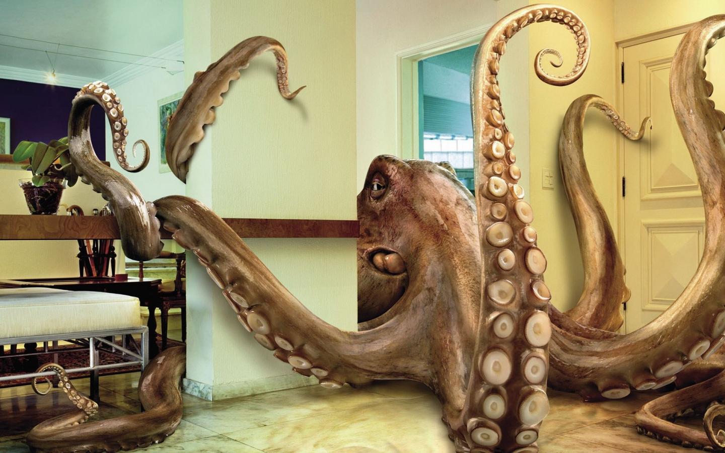Осьминог, квартира, щупальцы обои для рабочего стола, картинки, фото, 1440x900. | ||||||||||||||||