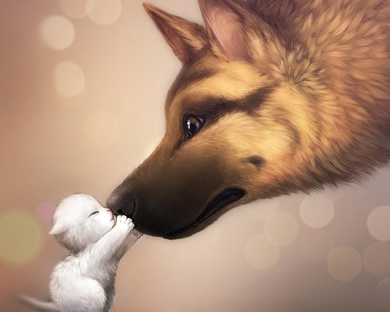 Овчарка и котенок обои для рабочего стола, картинки, фото, 1280x1024. | ||||||||||||||||
