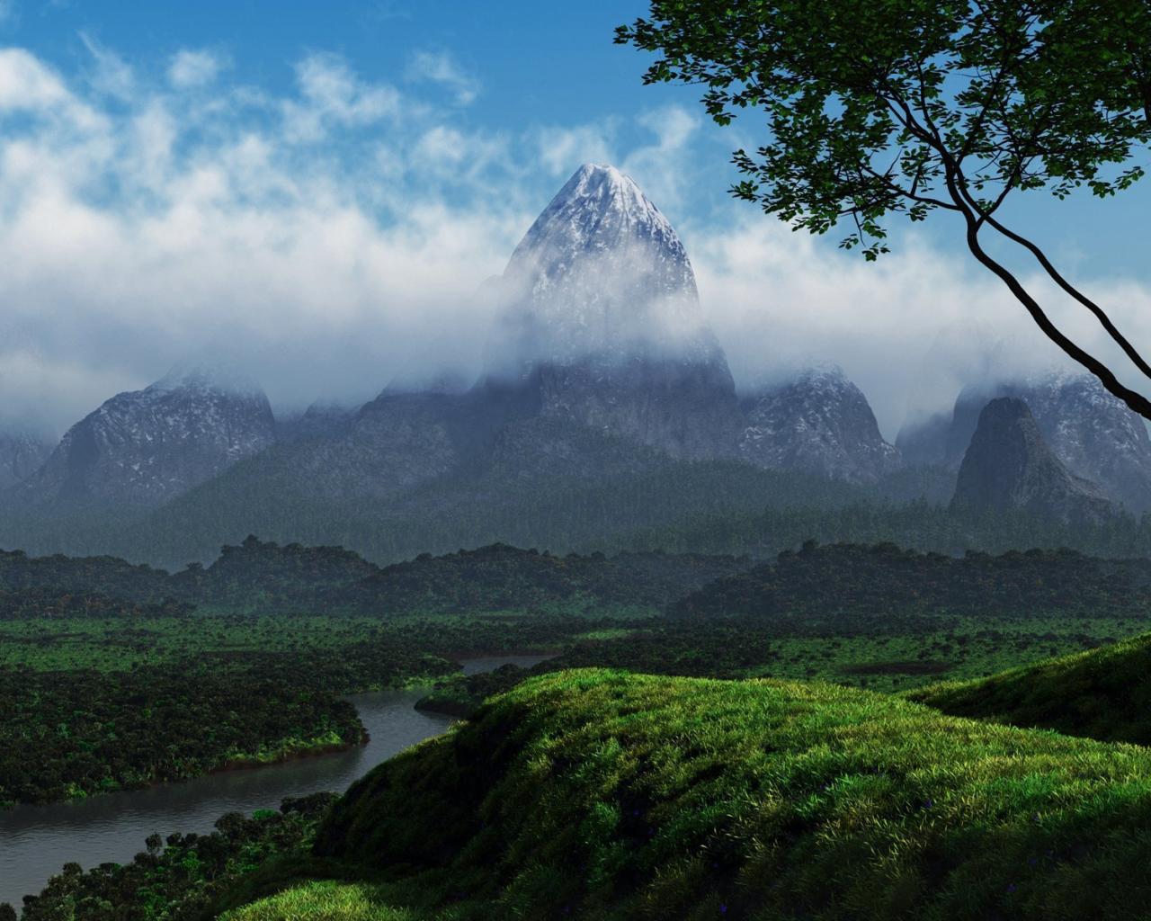 Природа, гора, деревья, река, зелень, облака, холмы обои для рабочего стола, картинки, фото, 1280x1024. | ||||||||||||||||
