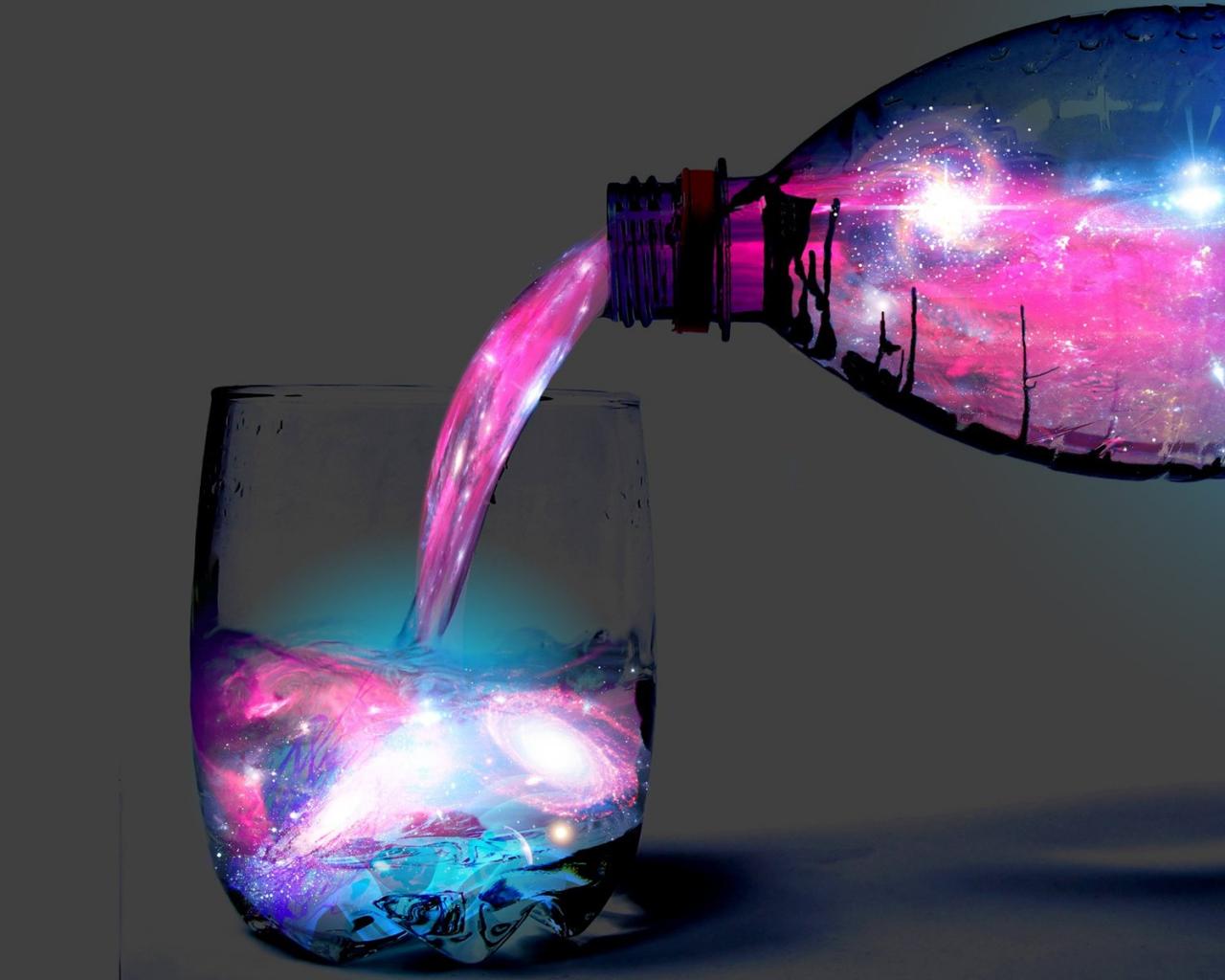 Галактики, в воде, бутылка, стакан обои для рабочего стола, картинки, фото, 1280x1024. | ||||||||||||||||