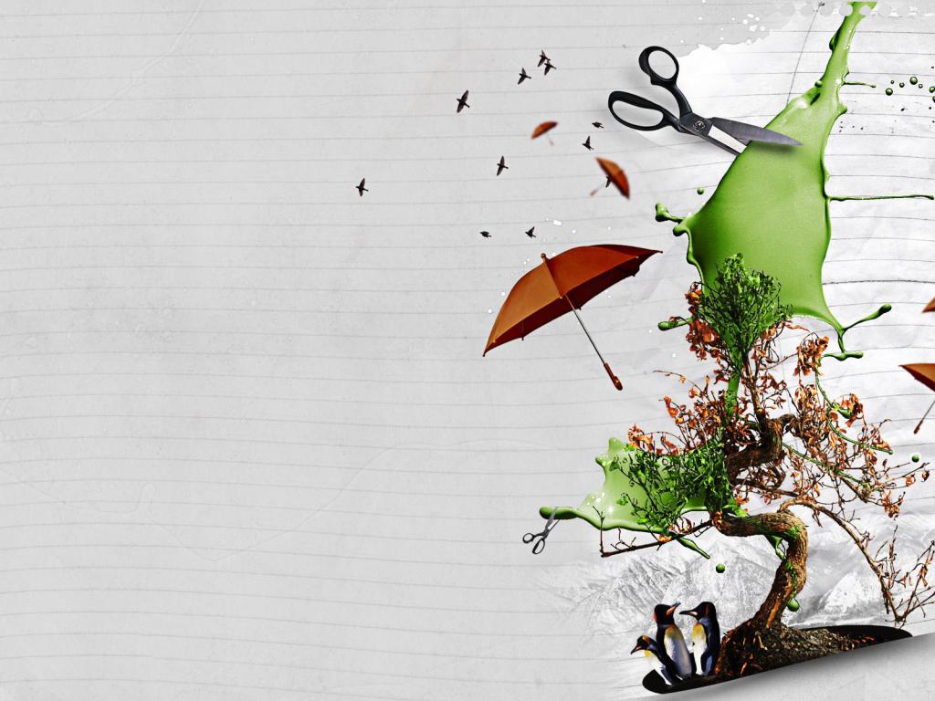 Ножницы, коллаж, шоп, зонт, дерево, пингвины обои для рабочего стола, картинки, фото, 1024x768. | ||||||||||||||||