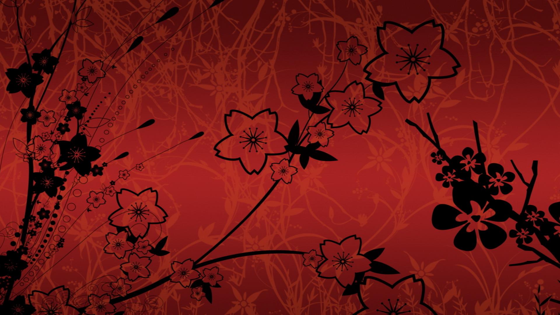 Черные цветы на красном фоне - 3D обои для рабочего стола, картинки, фото, 1920x1080. | ||||||||||||||||