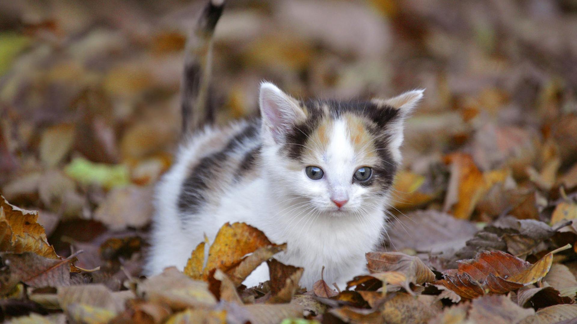 Котенок в осенних листьях обои для рабочего стола, картинки, фото, 1920x1080. | ||||||||||||||||