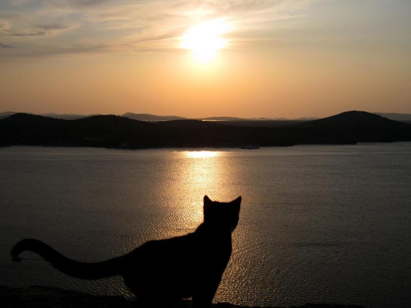 Кот любуется восходом солнца - с котами обои для рабочего стола, картинки, фото, 800x600. | ||||||||||||||||||||||