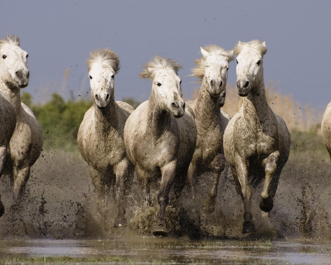 Белые лошади бегут галопом по грязи обои для рабочего стола, картинки, фото, 1280x1024. | ||||||||||||||||