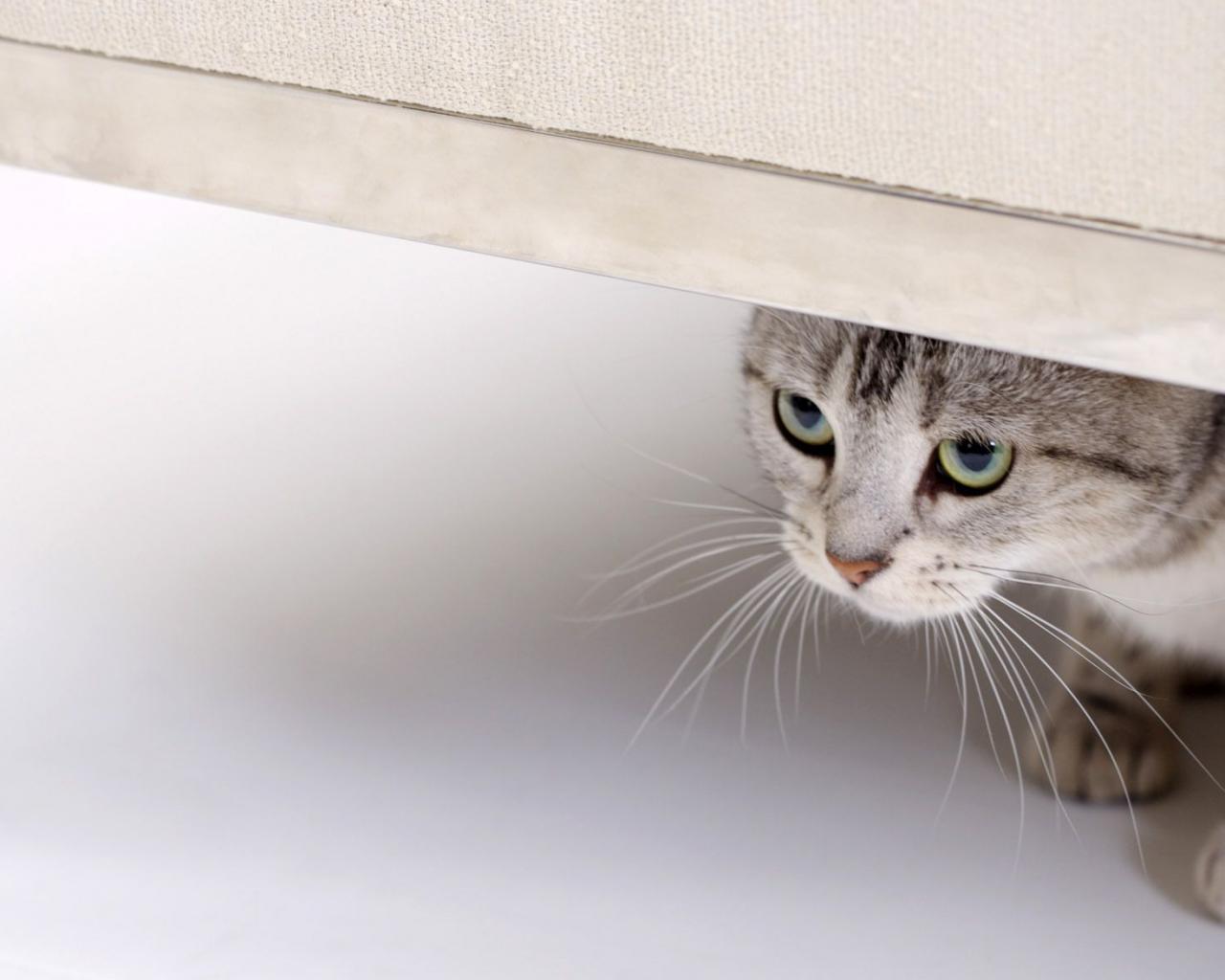 Кошка смотрит из под двери обои для рабочего стола, картинки, фото, 1280x1024. | ||||||||||||||||