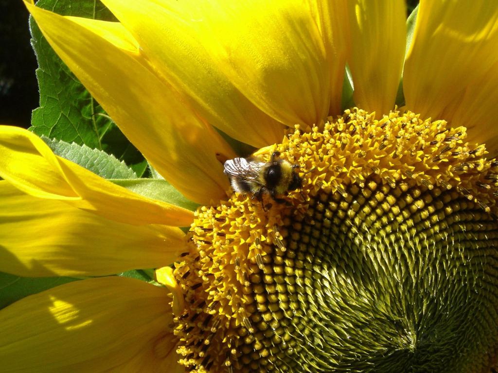 Пчела собирает пыльцу на подсолнухе обои для рабочего стола, картинки, фото, 1024x768. | ||||||||||||||||||||||