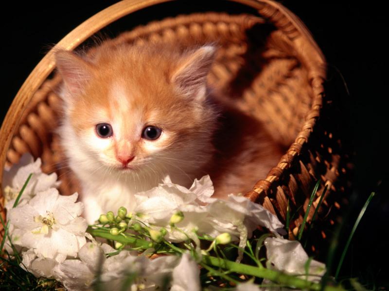 Котенок в корзине обои для рабочего стола, картинки, фото, 800x600. | ||||||||||||||||