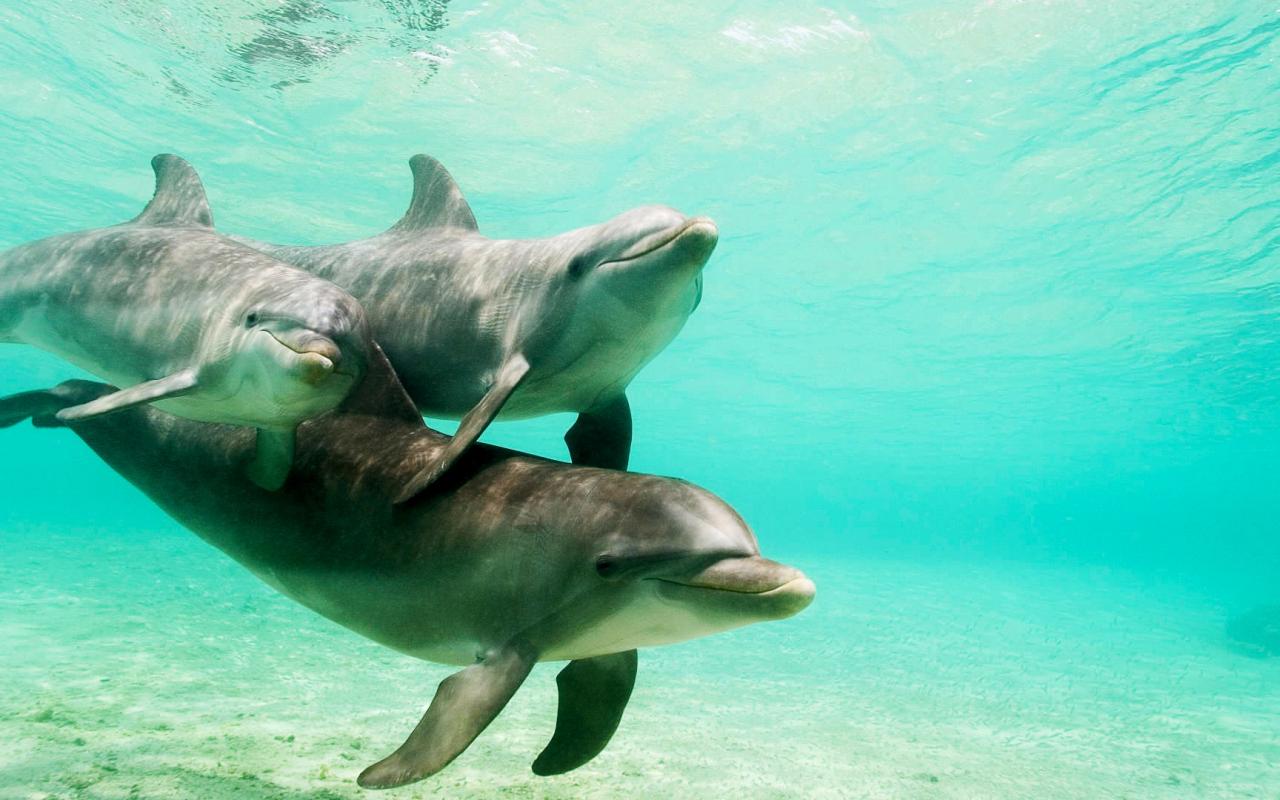 3 дельфина под водой обои для рабочего стола, картинки, фото, 1280x800. | ||||||||||||||||