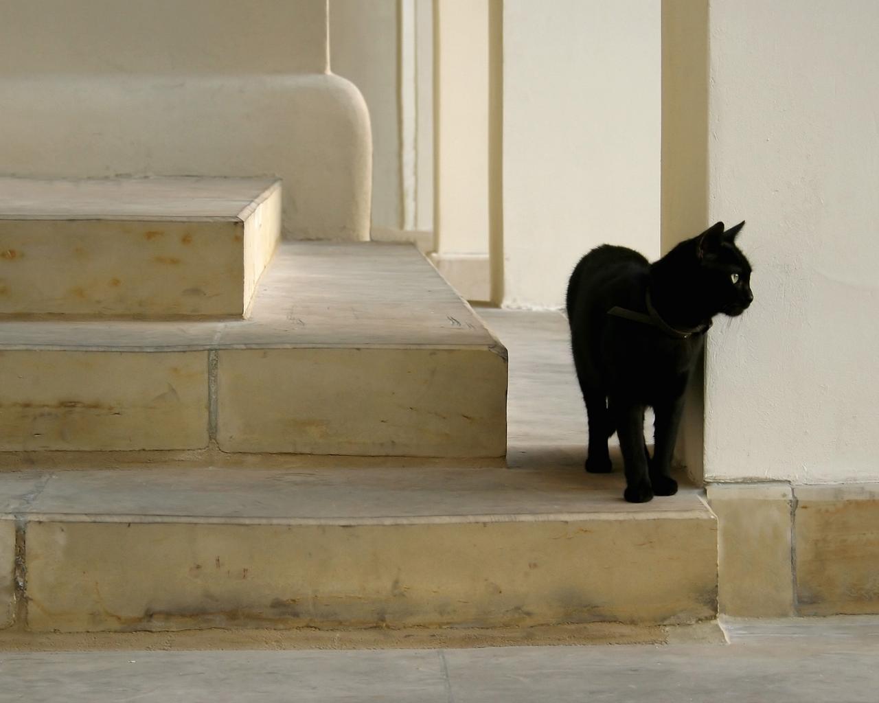 Черная кошка на лестнице обои для рабочего стола, картинки, фото, 1280x1024. | ||||||||||||||||