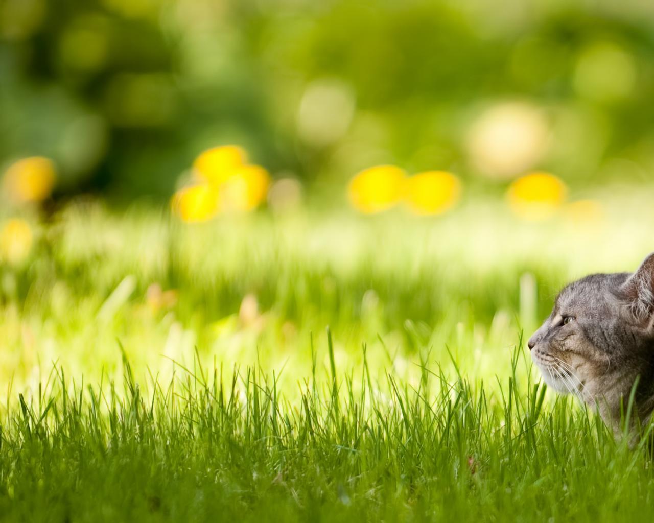 Хитрый кот в зеленой травке обои для рабочего стола, картинки, фото, 1280x1024. | ||||||||||||||||