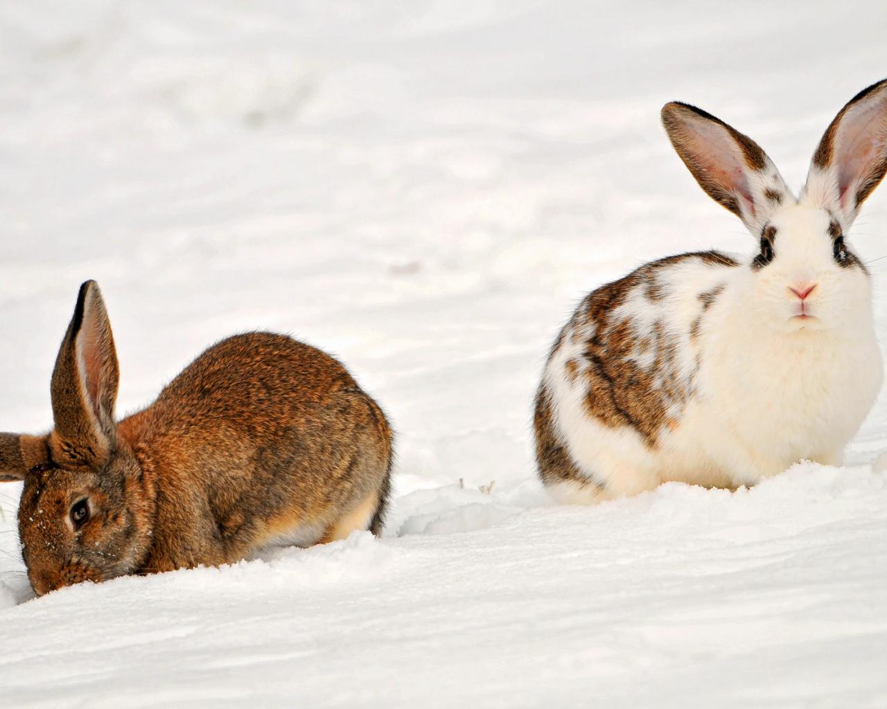 Кролики на снегу обои для рабочего стола, картинки, фото, 1280x1024. | ||||||||||||||
