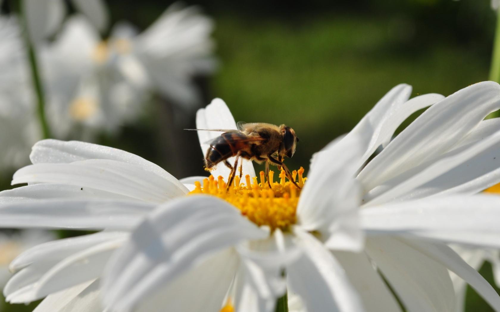 Пчела на ромашке обои для рабочего стола, картинки, фото, 1680x1050. | ||||||||||||||