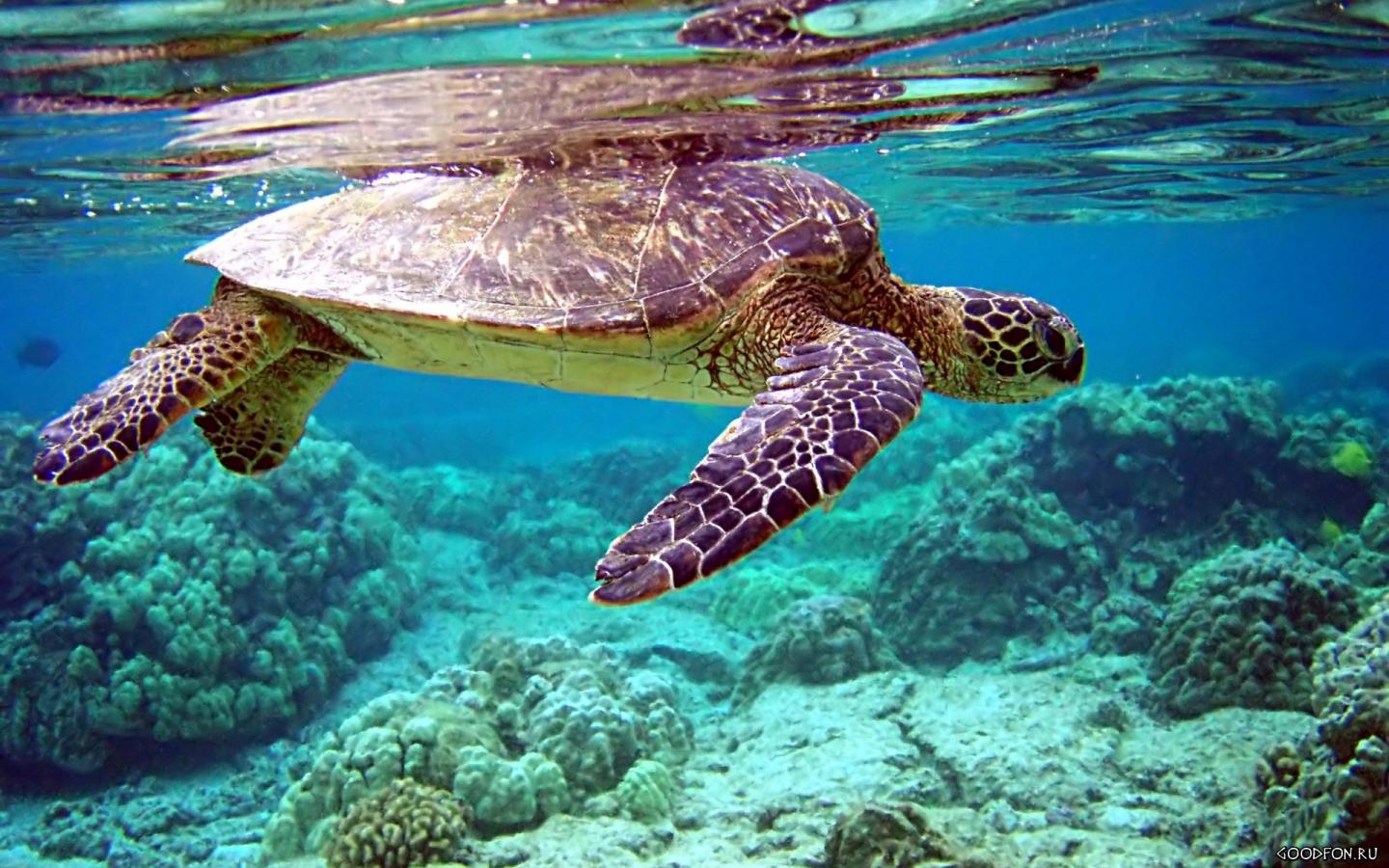 Черепаха на мели обои для рабочего стола, картинки, фото, 1440x900. | ||||||||||||||||