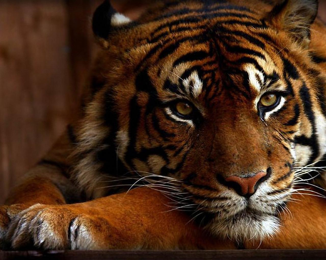 Тигр, взгляд, лапы обои для рабочего стола, картинки, фото, 1280x1024. | ||||||||||||||||