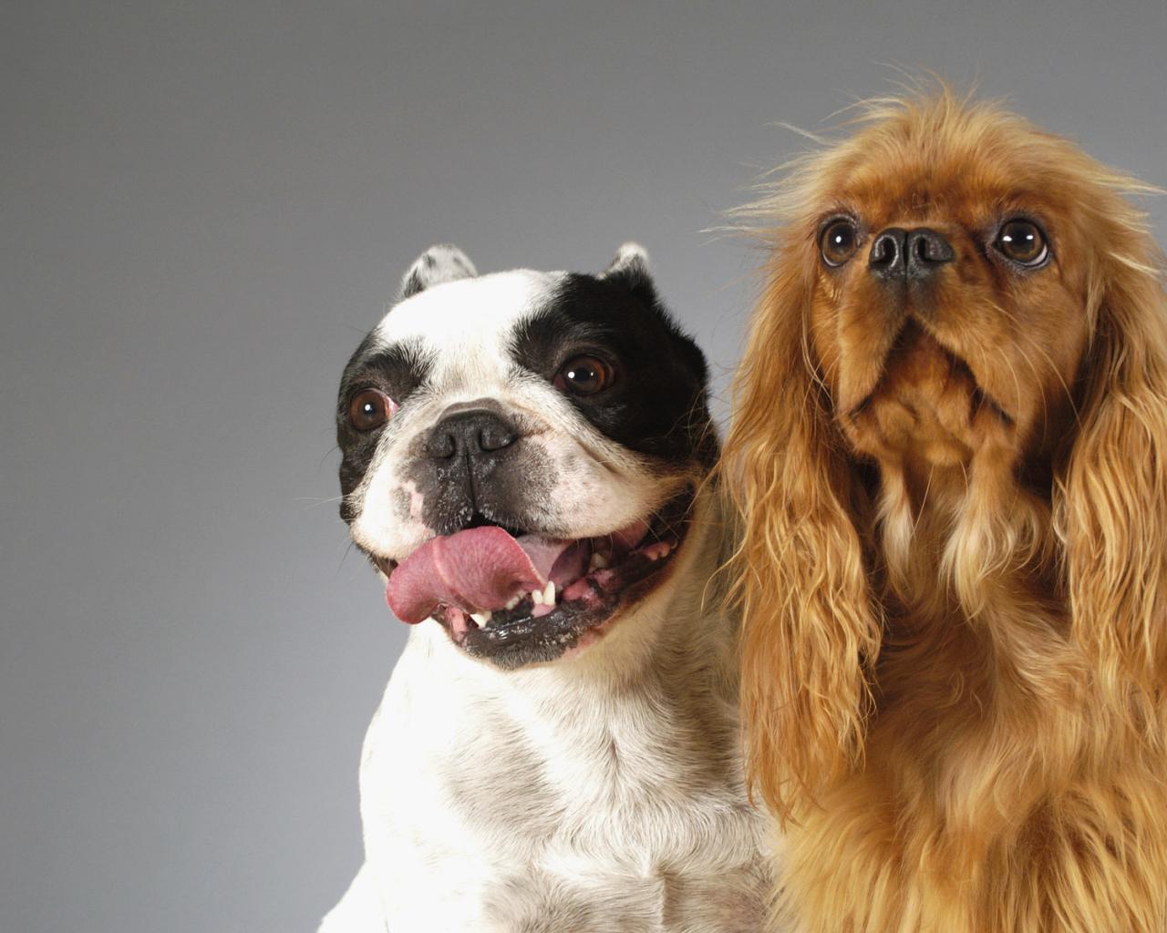 Серый фон, пара, породы, взгляд, язык обои для рабочего стола, картинки, фото, 1280x1024. | ||||||||||||||||||||||