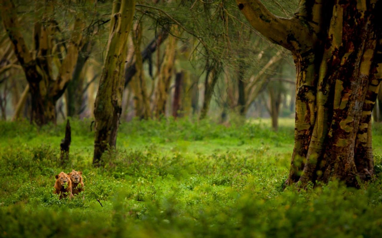 Львы, в зеленом, лесу обои для рабочего стола, картинки, фото, 1280x800. | ||||||||||||||||