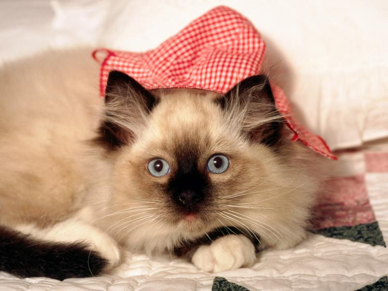 Сиамская кошка в красной шапке обои для рабочего стола, картинки, фото, 800x600. | ||||||||||||||||