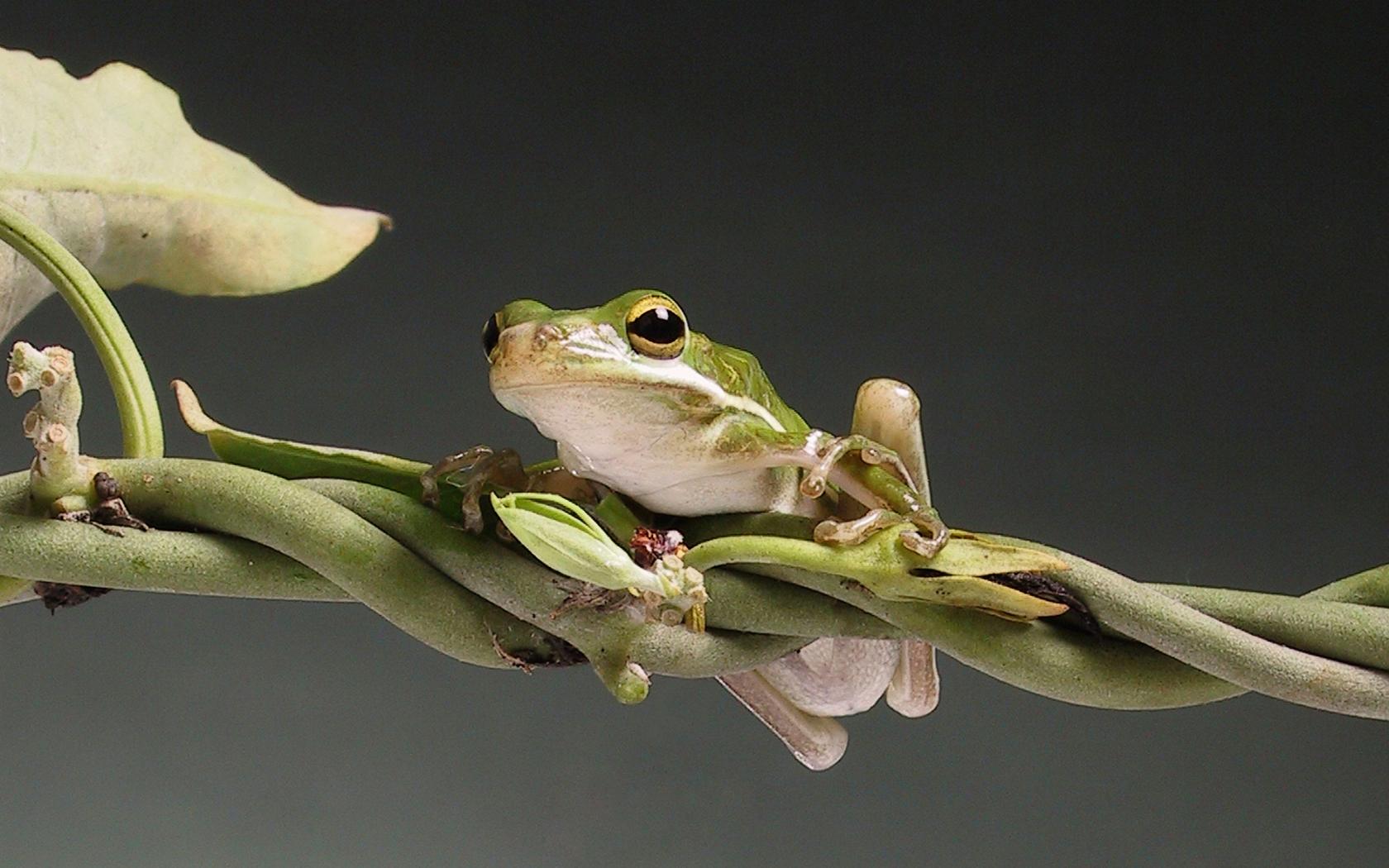 Лягушка на ветке лианы - обои для рабочего стола, картинки, фото, 1680x1050. | ||||||||||||||||