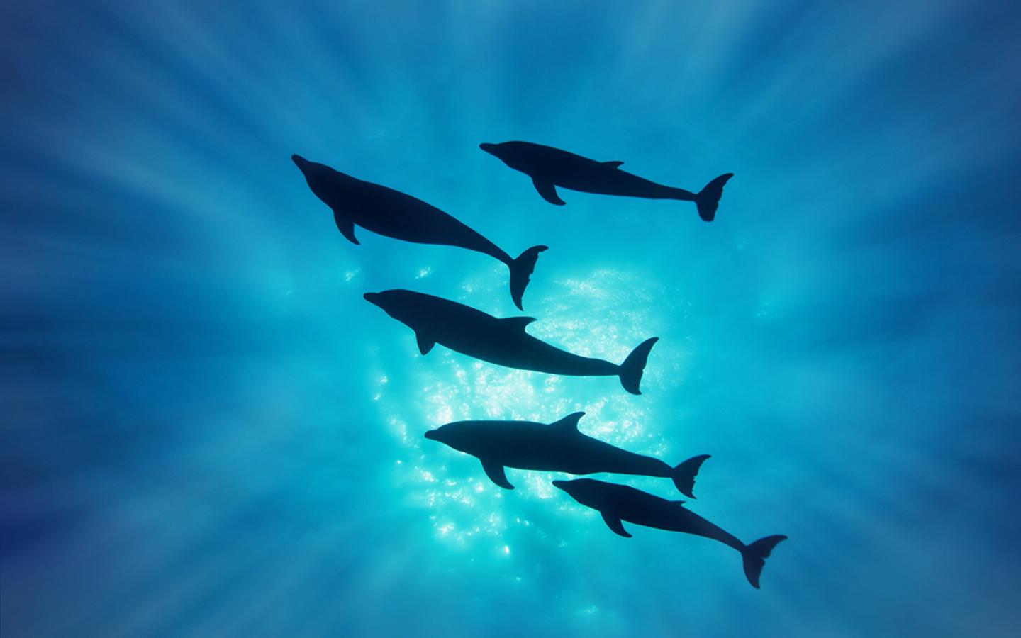 Дельфины, силуэт, лучи обои для рабочего стола, картинки, фото, 1440x900. | ||||||||||||||||