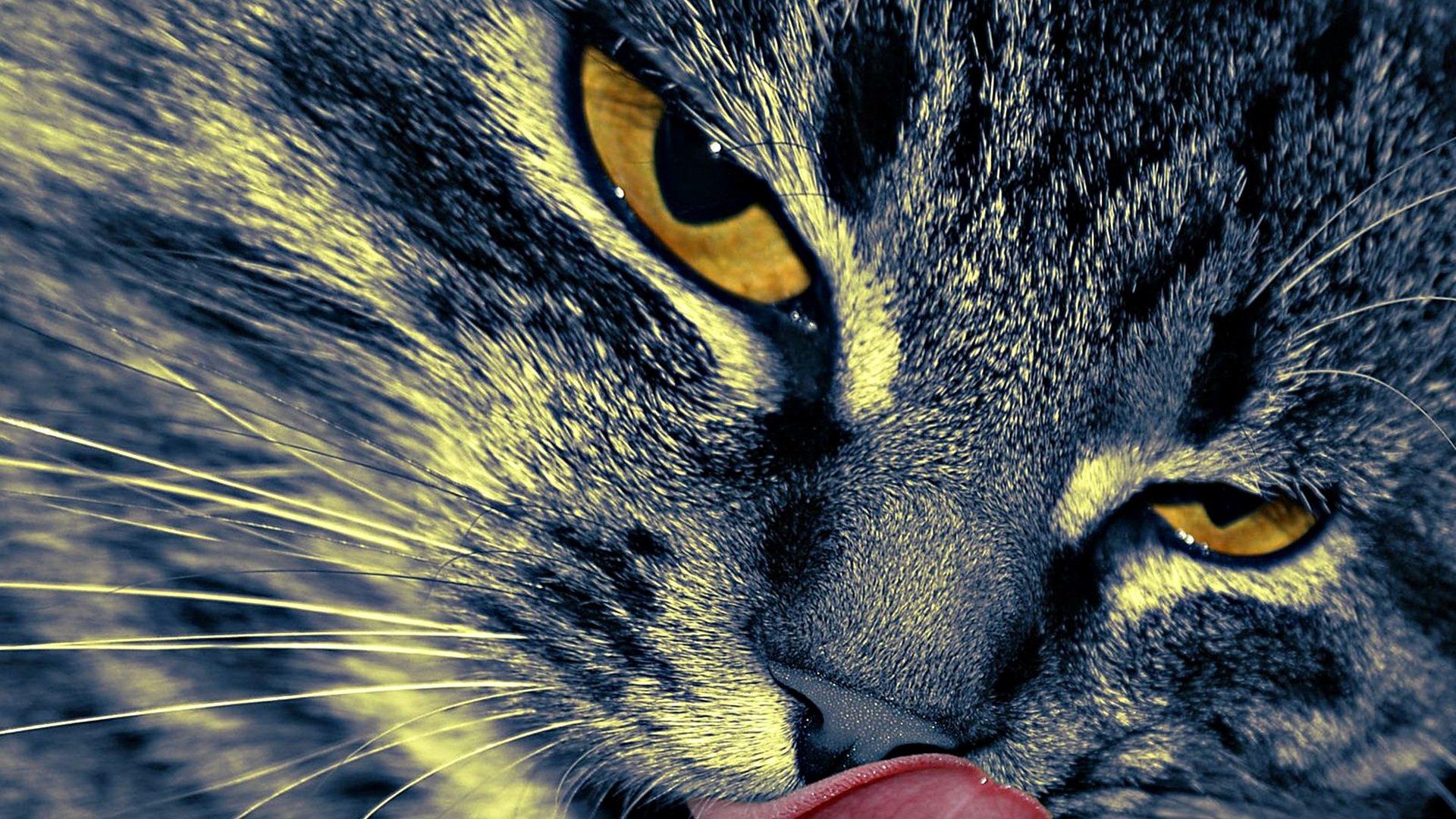 Кот, язык, глаза, крупный план обои для рабочего стола, картинки, фото, 1920x1080. | ||||||||||||||||