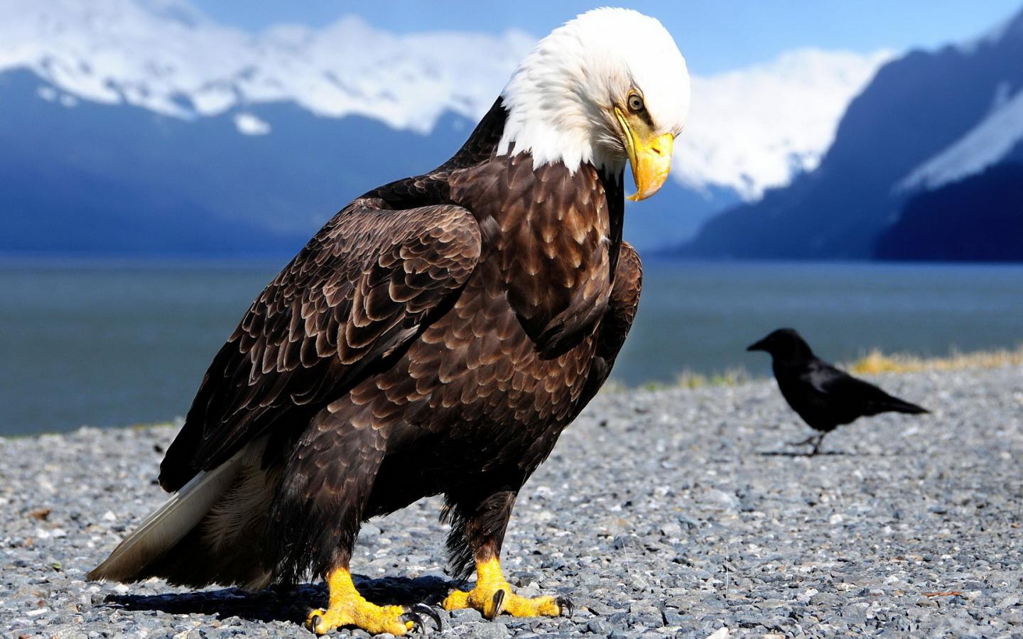 Птицы, орёл, ворона, размер, когти, клюв, перья, фокус, резкость обои для рабочего стола, картинки, фото, 1440x900. | ||||||||||||||||