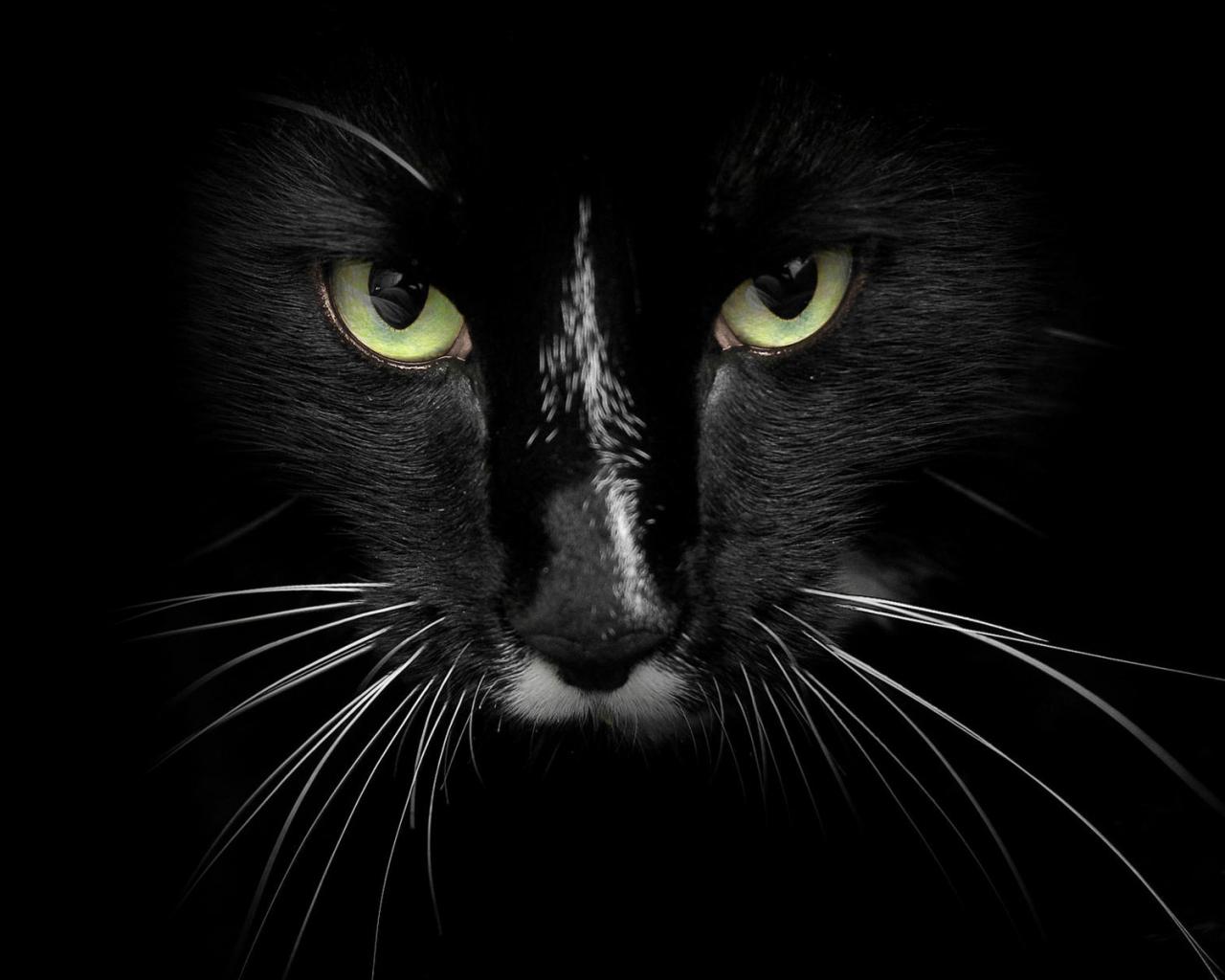 Черный кот, взгляд из тьмы обои для рабочего стола, картинки, фото, 1280x1024. | |||||||||||||||||||||||